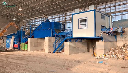cribadora que separará el residuo en dos fracciones, la fracción más pequeña de 0 a 30 mm cae en un zócalo y la fracción restante (de 30 a 250 mm) es transportado