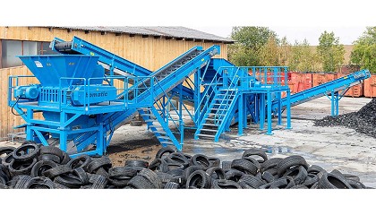 cribadora que separará las partes de neumáticos inferiores a 100 mm y retornará a la trituradora las partes con más de 100 mm. En el caso de que se requiera