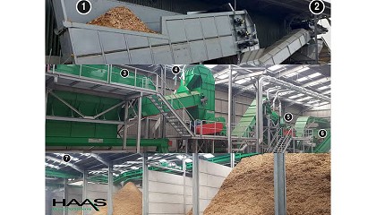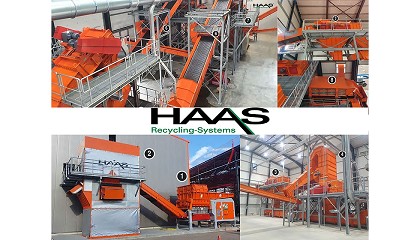 Cribadora de estrellas 4- Molino de martillos HAAS ARTHOS 1600 E 5- Separador no férrico con tambor magnético integrado 6- Cribadora plana HAAS modelo HPS 125, con fracciones: 0 - 5 mm 5 - 20 mm 20 - 50 mm Mayor