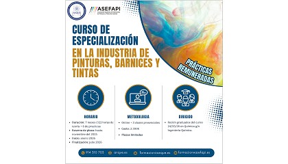 curso de especialización en la industria de pinturas, barnices y tintas - 07/10/2025: Anque y Asefapi convocan un curso de especialización en la industria de pinturas, barnices y tintas La Asociación