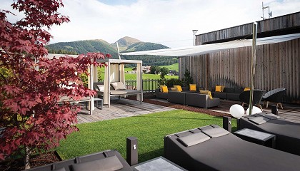 Dolomitas de Sesto. Tras una importante renovación en 2017, el Hotel Ambet combina una arquitectura ligera con grandes ventanales y materiales naturales, con elementos modernos como el spa y la piscina