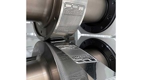 Estampado en rollo de placas bipolares utilizando BPPflexRoll. En la nueva tecnología desarrollada, la estructura de la placa bipolar es estampada por un par de rodillos. Foto: Fraunhofer IWU. El procesamiento