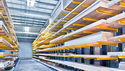 estanterías para cargas pesadas instaló un volumen de acero equivalente a seis camiones completamente cargados, lo que dio como resultado un sistema de estanterías con 390 metros de estanterías cantiléver