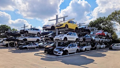 estanterías de Ohra: el especialista europeo de estanterías cantiléver ha desarrollado un robusto sistema de estanterías para vehículos y piezas de vehículos, especialmente para empresas de reciclaje. Las estanterías cantiléver