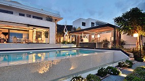 jardín, en una propuesta que prioriza eficiencia, durabilidad y una estética mediterránea serena y sostenible. Redacción Interempresas En el jardín se encuentra la piscina con una pequeña cascada, las baldosas