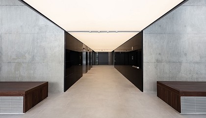 -2 de Nicolaudie, que permite su control directo, independiente o remoto a través de la pasarela DMX SLESA-UE7. Los techos tensados y las paredes con vidrios ‘absolute black’ refuerzan la luz como eje central del diseño. Complejo de Oficinas