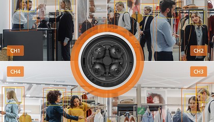oficinas compartidos y restaurantes. Su amplia zona de vigilancia, junto con los infrarrojos y la analítica con inteligencia artificial, elimina los puntos ciegos con imágenes claras en todas las condiciones de iluminación. La IA dentro de la cámara ayuda a reducir las falsas alarmas, con clasificación de objetos en tiempo real que permite capturar y discernir entre personas, rostros, vehículos
