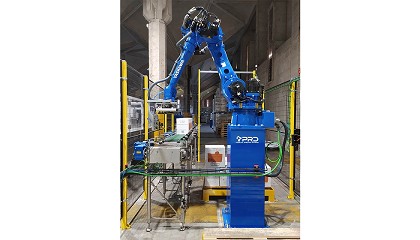 paletizado y hacerlo de una manera sencilla. Un solo robot PL80 para gestionar el paletizado de dos líneas de producción Por todo ello, la solución ideal era el robot de paletizado