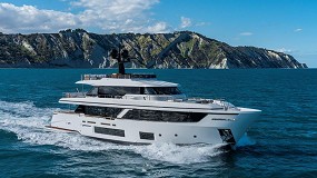 pufs, mientras que la zona protegida por el hard top cuenta con una zona de comedor a la izquierda y un nuevo mueble bar a estribor que da a un espacio