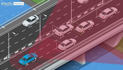 radar y cámaras para detectar el tráfico. Foto: IDTechEx. Creciente rendimiento de las cámaras, la IA y el radar Una de las razones por las que el LiDAR podría no estar
