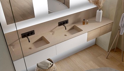 toalleros frontales y laterales mecanizados. La encimera Infinity está disponible en cinco texturas de alta definición. Si lo que se necesita es un lavabo doble, la colección también ofrece una alternativa