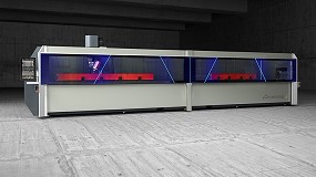 tronzadora de doble cabezal TDX 622 Edgemaster de 5 ejes, que se caracteriza por una alta capacidad de corte gracias a la combinación exclusiva de un corte radial/directo. También de Mecal