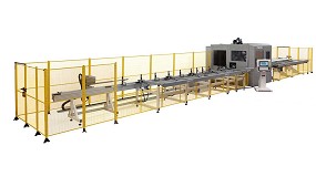 tronzadoras de Gemma Group. Seguidamente, se exponen detalles de estas novedades. Línea de producción de las tronzadoras de doble cabezal de Gemma Group, una de las firmas representadas por M&M Machinery