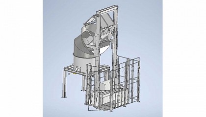 volteo del cazo (existen otros modelos para elevaciones de 2,5 m y varias capacidades para el cazo). Volteador a pala V PL 1500 : Implemento para ser recogido por una pala