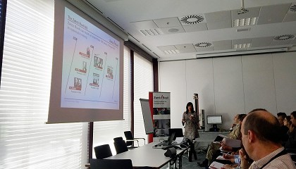 7% menos de plástico. Destacó asimismo proyectos emprendidos por Aimplas en esta línea, como Bread4pla o Bugworkers. Demostración de Zwick Ibérica con sus soluciones para el sector del packaging. El responsable de Aimplas también destacó los envases activos e inteligentes recordando los proyectos Pla4food, Natal, Polifun, Natenvas o Envafung, para el primer grupo e indicando aplicaciones de envases inteligentes como