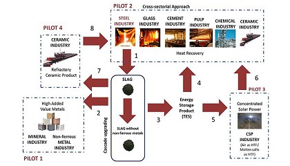 7 centros de investigación y 8 empresas. Entre los diferentes pilotos que se desarrollan en el seno de Reslag, el presente artículo hace referencia a la construcción de una planta piloto en las instalaciones de ArcelorMittal (Sestao) para recuperar calor de los gases de salida del horno de arco eléctrico, que contará con un sistema de almacenamiento térmico basado