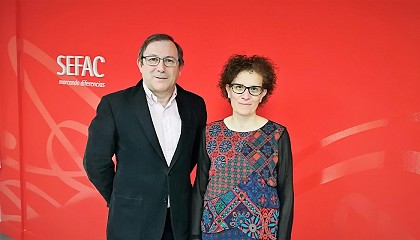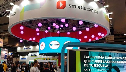 Almirall, director corporativo de tecnología y negocio digital de SM y Marta Novo, directora general de SM España, recibieron en el estand durante la jornada inaugural de SIMO Educación 2019 a sus principales