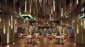 Andreu World y las mesas en madera de castaño con efecto luminiscente en las partes tratadas con resinas, diseñadas también por Alex March. Y, por otro, la zona de coctelería