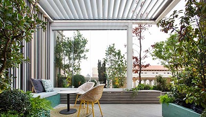 Frigicoll, el salón “The Art of Living Frigicoll”, diseñado por Manuel Espejo. La pérgola bioclimática Umbra, que destaca desde la terraza del edificio de Núñez de Balboa 86, es la opción