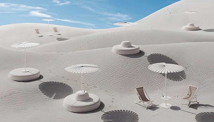 orbitar una sombrilla única Ensombra, uno de los diseños más distintivos de Gandiablasco Con su sistema de apertura y cierre a base de lamas, el parasol Ensombra es uno de los diseños