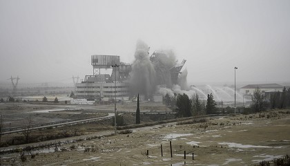 Andorra, última estructura esbelta de la planta - 22/01/2024: Para la detonación se han empleado 620 kg de explosivo Endesa vuela la tercera caldera de la central térmica de Andorra, última
