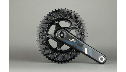 dolores o problemas de rodilla en algunos ciclistas. La oferta de platos AbsoluteBlack es compatible con bielas de grupos de carretera de cuatro o cinco brazos y BCD 110-130.