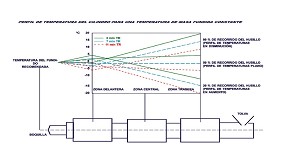 cizalla generada por el giro del husillo. La contrapresión a la carga o durante la dosificación es la presión a la que el plástico fundido en la zona delantera del husillo