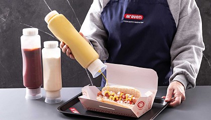 comida rápida - 18/09/2024: Está diseñado para mantenerlo siempre boca abajo y permitir así una dosificación rápida y sencilla, sin esperas para el cliente Araven innova con el nuevo dosificador de salsas