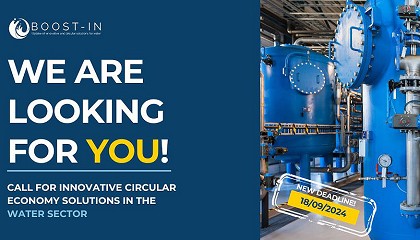 convocatoria BOOST-IN para soluciones de Economía Circular en el Agua - 04/09/2024: Hasta el 18 de septiembre BIOAZUL amplía la fecha límite de la convocatoria BOOST-IN para soluciones de Economía