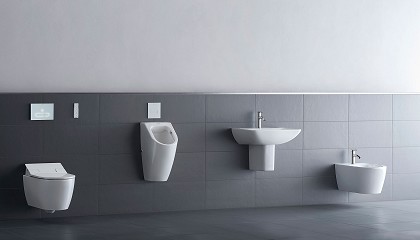 Duravit , ofrece una serie purista para el ámbito privado y para proyectos. El fino borde circundante, que es característico del diseño, se puede encontrar también en los inodoros y los urinarios