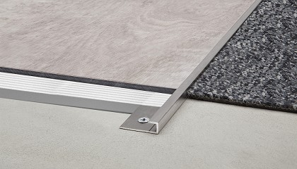 escaleras existe Vinpro-Step. El perfil de forma rectangular protege los cantos de los recubrimientos y es antideslizante, gracias a su zona de pisada acanalada. Para la formación de esquinas