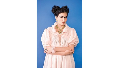Frida Kalho, artista mexicana y referente del siglo XX. Las modelos llevan recogidos con toques de los años 50, trenzas , posticería, extensiones, rizados con planchas. José Navarro Aledo ha colaborado