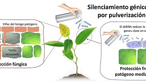 Host-Induced Gene Silencing). Fotografía 2. Esquema de la tecnología HIGS: Silenciamiento génico inducido por huésped. En HIGS, es necesario obtener plantas modificadas genéticamente que produzcan por sí mismas ARNdc