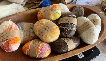 lana, desde el esquilado, el lavado, el cardado, el hilado, el teñido con pigmentos naturales, hasta el tejido final. A través de este proyecto, que cuenta con la colaboración de la empresa