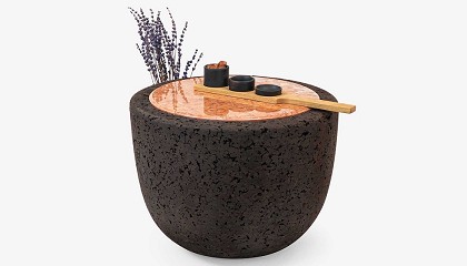 mesita Magma, que representa la corteza terrestre, Dam llama la atención sobre la belleza del planeta, dinámico, pero profundamente frágil. Hoy en día, todo el mundo habla de Diseño Biofílico