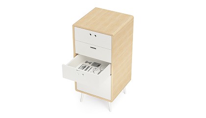 mesita Varina utiliza corcho como material base y viene en dos tamaños diferentes. Además, la rueda de fieltro de la mesita está disponible en diferentes colores, para adaptarse a cualquier