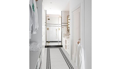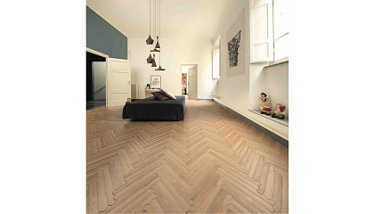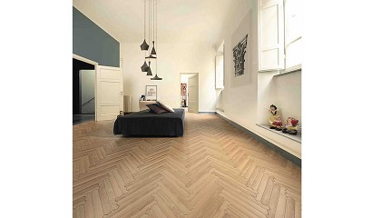 mosaico de estilo Versalles en las mismas tonalidades. Esta familia conserva las ventajas de durabilidad, facilidad de instalación y mantenimiento propios de los suelos SPC, a las que suma una estética
