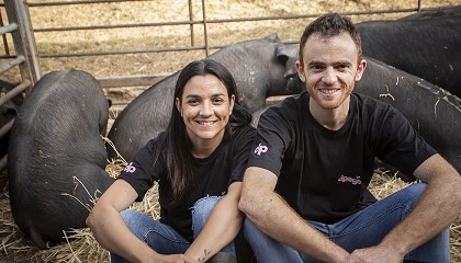 nieve, mojándose con la lluvia o recibiendo duchas de agua fría en verano. En su granja ecológica de Olius, en Lleida, Marta Borrás y Martín Ezpeleta tratan a sus cerdos