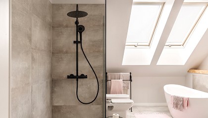 Panam Evo Extreme. También con rociador de amplio tamaño, pero con un diseño de formas redondeadas y atemporales. Se mantienen los acabados cromados y negros y se incluyen los sistemas