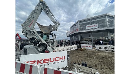 parasol y radio digital DAB con tecnología Bluetooth (el aire acondicionado es opcional). La cabina está equipada con un asiento de lujo con respaldo alto y suspensión. Takeuchi expuso en Bauma