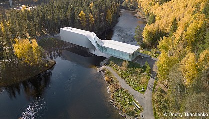 parasol que cubre el exterior del edificio y un tejado de acero de 470 toneladas cubierto con un manto vegetal, que actúan ambos como reguladores de la temperatura y la luz. Este