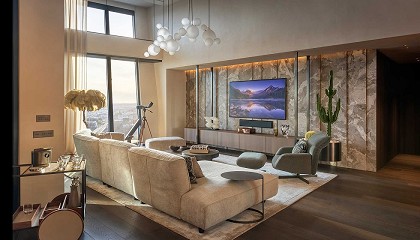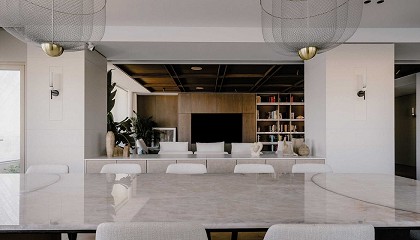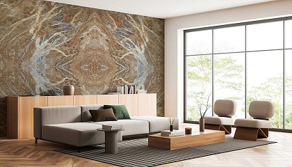 piedras de Antolini por los distintos espacios del habitáculo La piedra de la colección Natural Stone, Camouflage es el mármol principal de este proyecto. Elegida para revestir algunas paredes de la sala