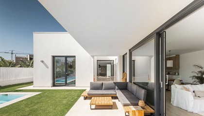 porche y con la piscina, creando un fluir de espacios que invita a compartir experiencias llenas de aire, agua y olor a mar con amigos y familia. En el porche