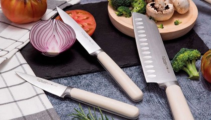 remaches. Las colecciones Polar y Oslo cuentan con los siguientes cuchillos: Cuchillo de verduras o puntilla de 9 cm : limpia, pela y corta pequeñas frutas y verduras. Cuchillo de cocina