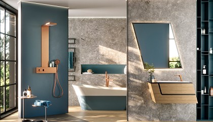 rociador con efecto lluvia, una salida inferior (oculta debajo del estante), y la teleducha, que permite jugar con sensaciones más intensas o relajantes. Sensaciones que hacen del baño un lugar