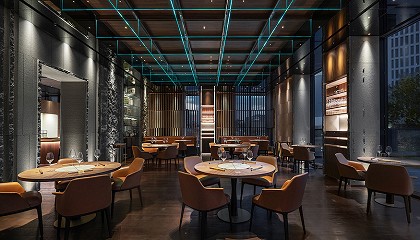Sushi Banco', y una cocina ilimitada y contemporánea en el elegante 'Restaurante Gourmet'. Acceso al restaurante. El espacio de 320 metros cuadrados abarca la espaciosa cocina abierta, la bodega, el exclusivo