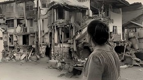 telas manchadas. Por otro lado, el renacer se observaba a partir de las cajas llenas de materiales necesarios para la recuperación de la catástrofe. En la segunda sección, una gran