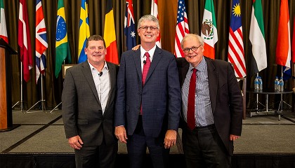 Brent McClendon, presidente y director general de la National Wooden Pallet & Container Association (NWPCA), y Fons Ceelaert, secretario general de Fefpeb, en Interpal 2023. La Federación Europea de Fabricantes de Palés