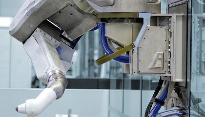 CRC VOC de Dürr. Imagen 2: Robot de seis ejes EcoRP L033i de Dürr en producción. En la fábrica de Changwon, Dürr planificó una planta con 3 niveles y 2 líneas