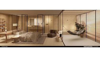 agradable y armónica en esta ‘suite ideal’ en la que toma parte la marca Cement Design y otras firmas como Neocerámica, Difusiona, Cotlin, Frigicoll, Ritortell, FF&E y Relax.